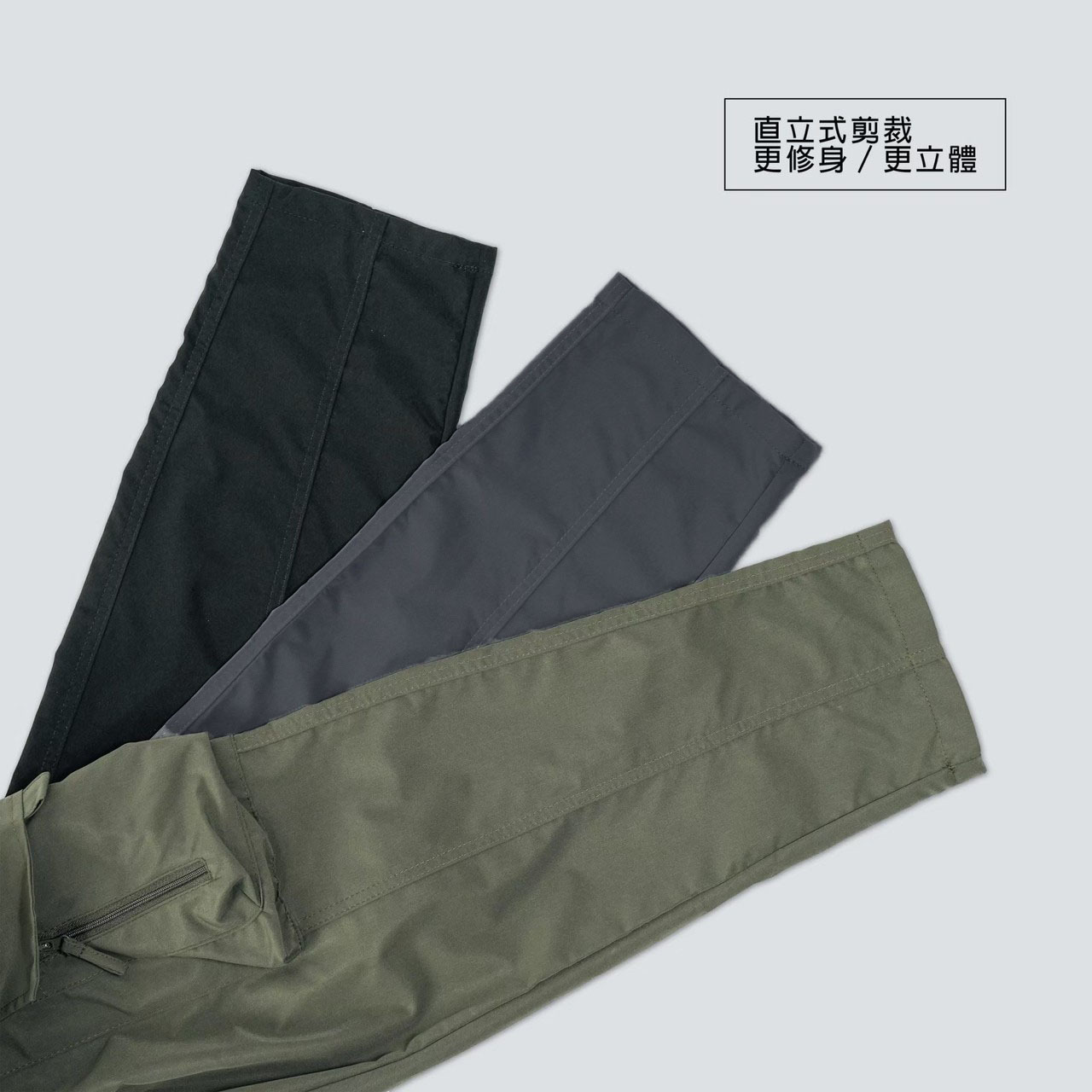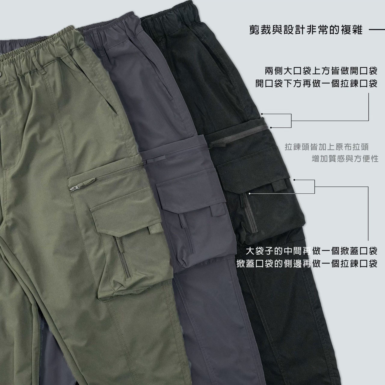 每條拉鍊口袋採用對色拉鍊