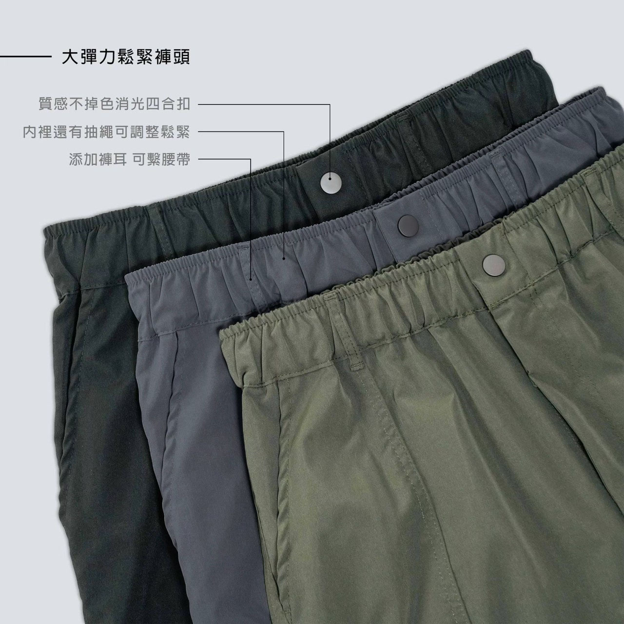褲頭採用大彈力伸縮鬆緊帶