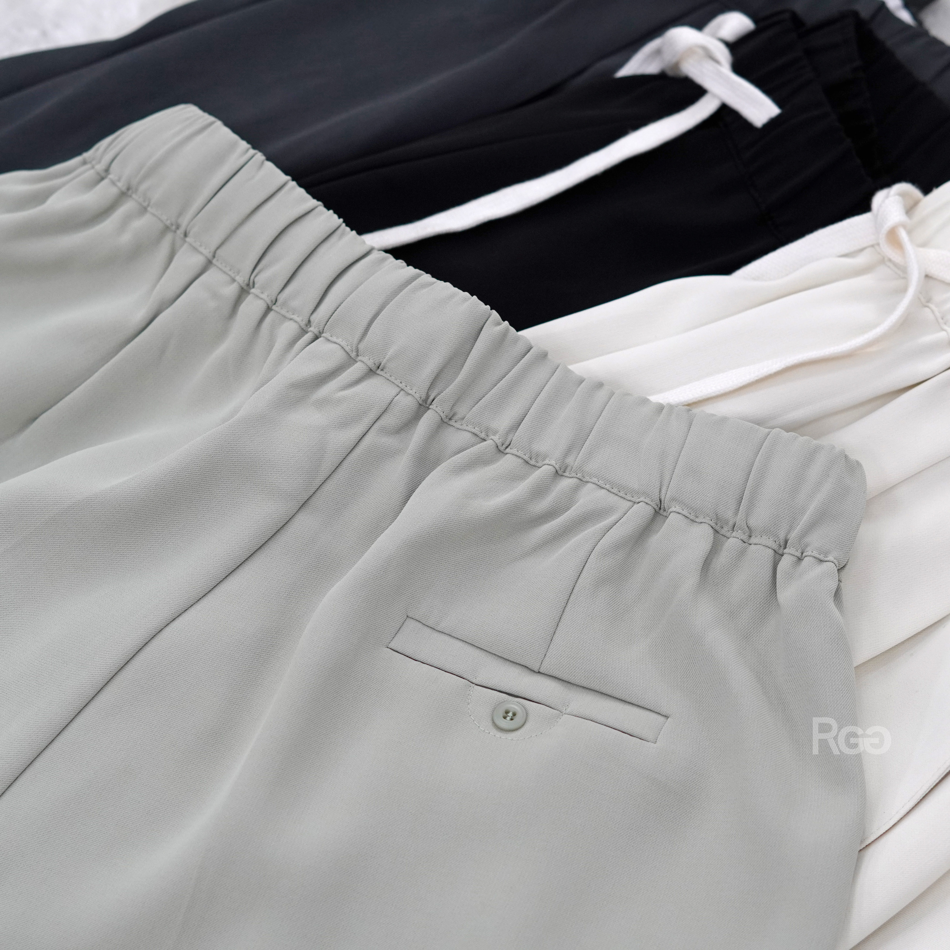這款是鬆緊褲頭+綁繩