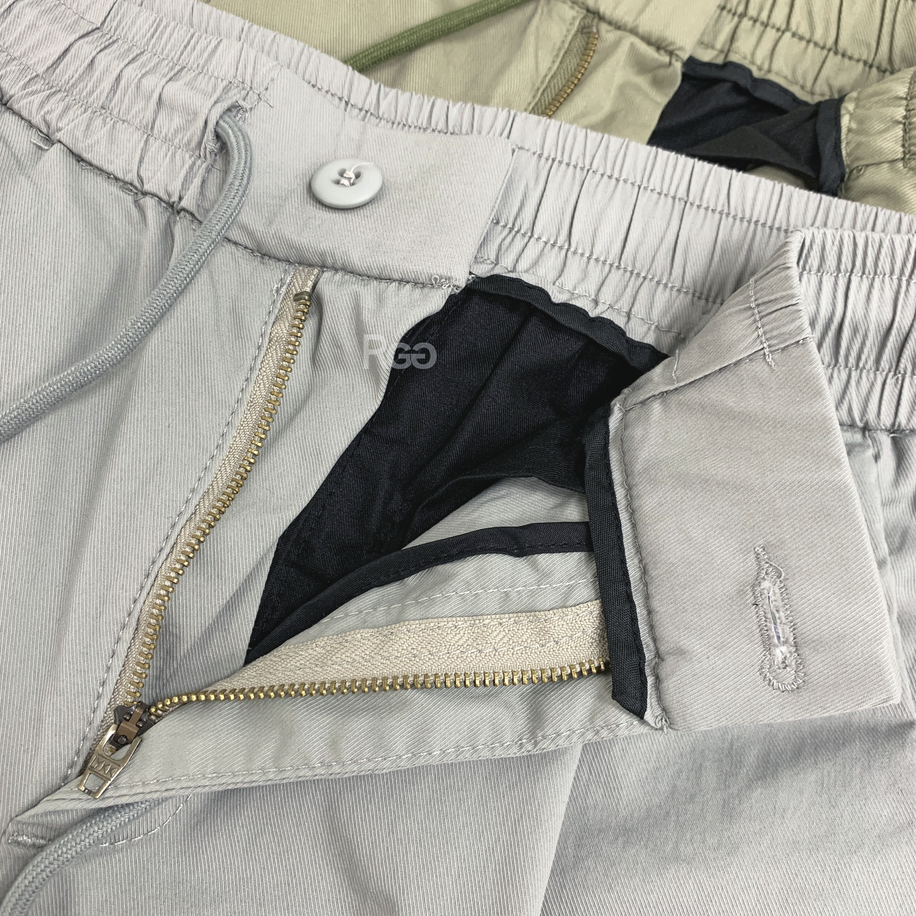 有抽繩鬆緊及褲子拉鍊為ykk