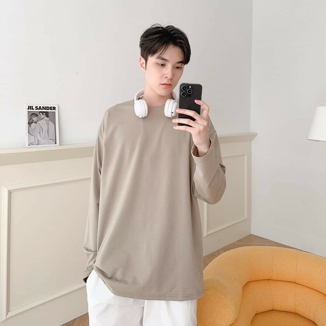 #80443 莫蘭迪色系圓領素面長T