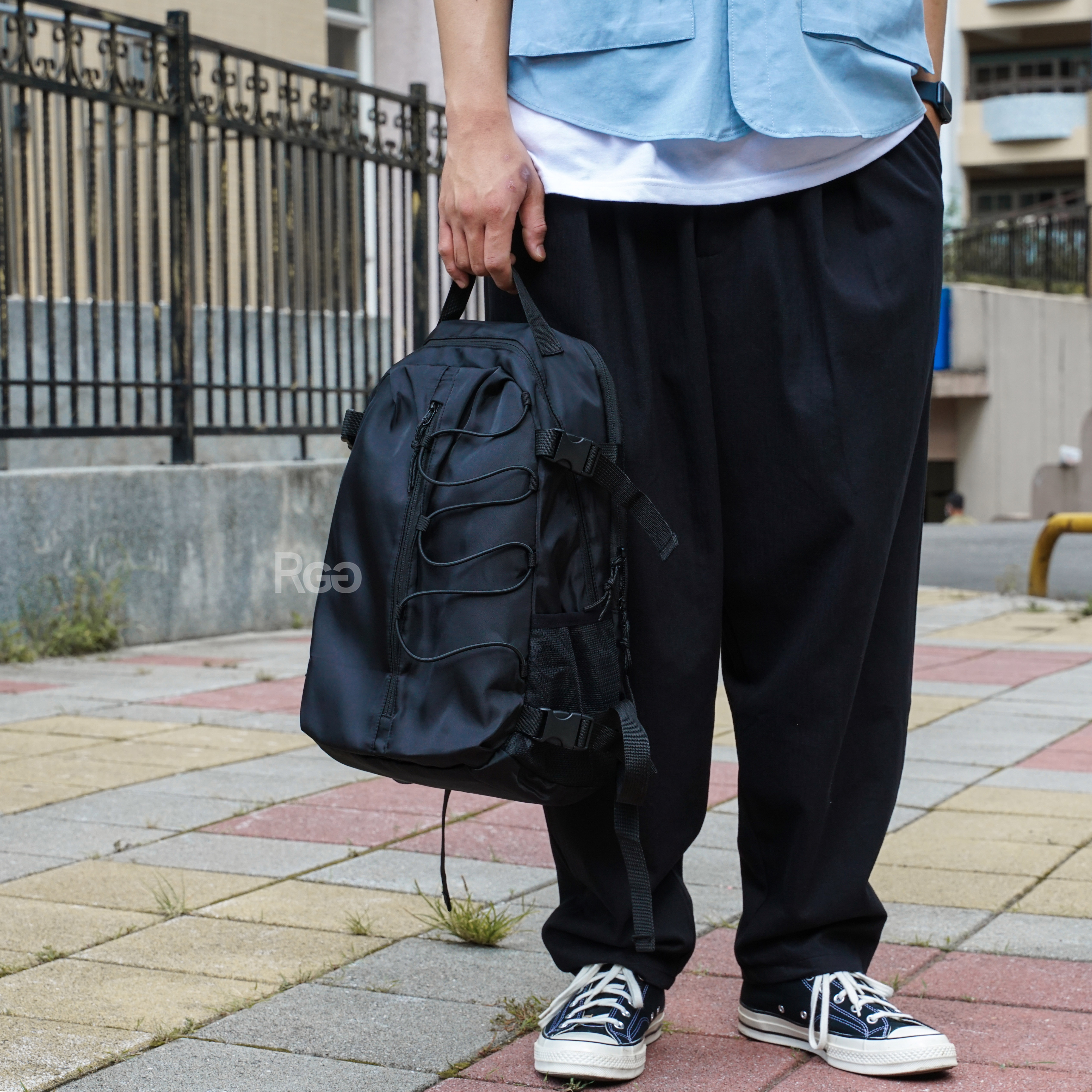 全黑加上帶有運動感的抽繩造型