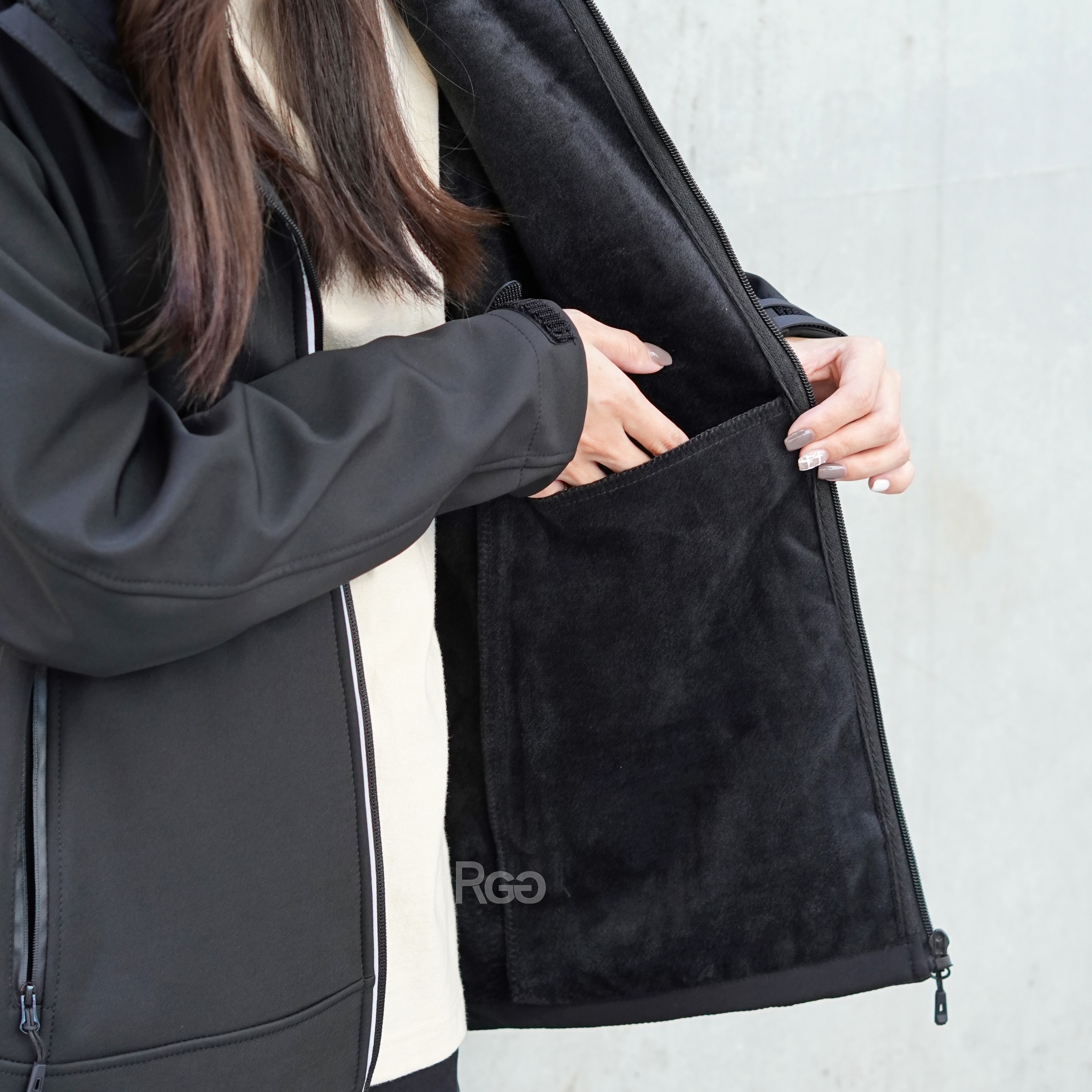「外層防潑水,內裡刷毛」